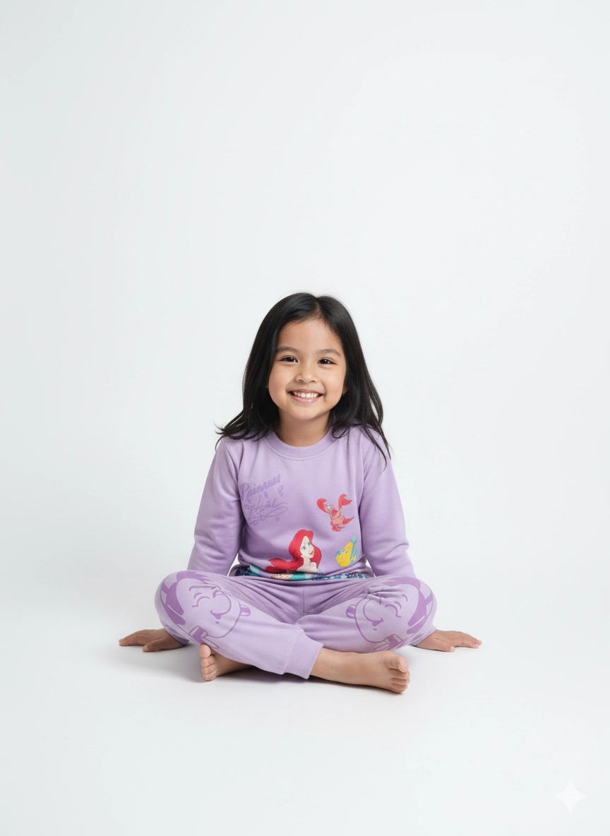 Girls’ Lilac Purple Disney Princess Pajamas with ‘Flounder’ Knee Patches