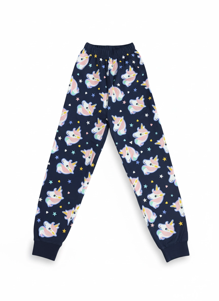 Kids’ Cozy Unicorn Print Pajamas – Navy Long-Sleeve Set